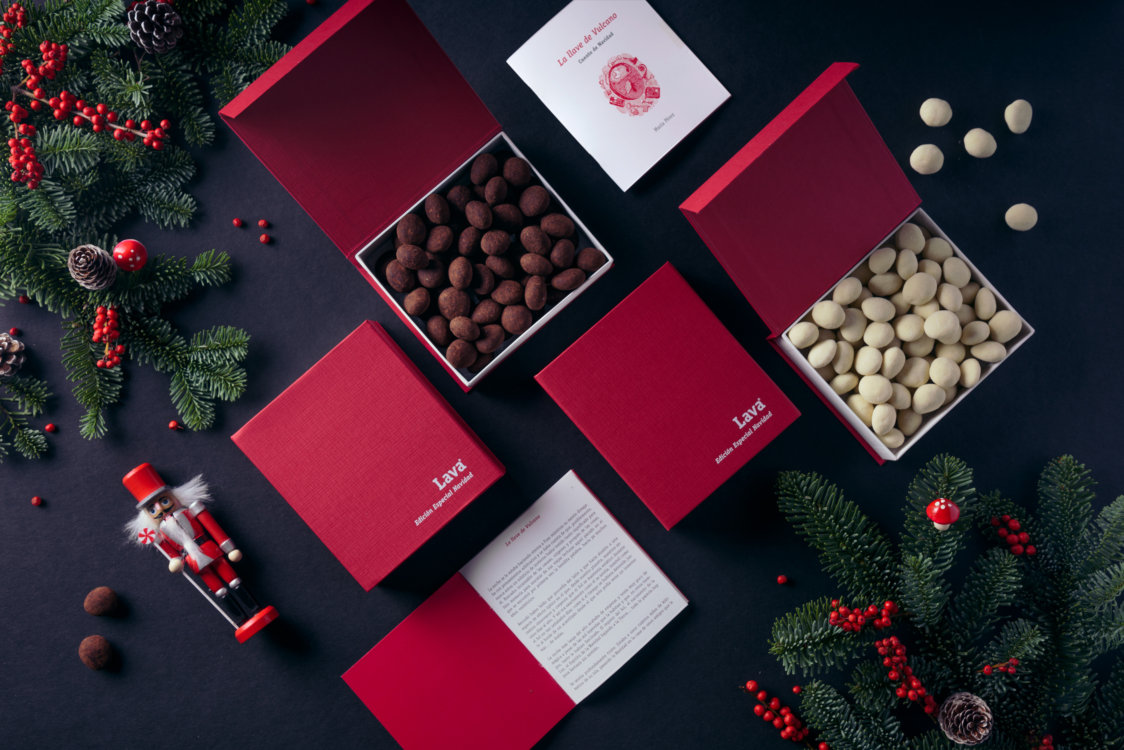 Special edition chocolate box made for Lava. The idea is to make a unique edition each year and invite a new writer each year to think up a traditional Christmas Carol that goes with the product. This year we invited María Pérez and she came up with an uplifting story related to the devastating volcanic activity on the island of La Palma in 2021, where one part of the benefit went to a charity supporting the many families that lost everything. The project got quite a lot of attention from the local media. Edition: www.chocolatedecanarias.es Story: La llave de Vulcano: María Pérez © 2021 Illustration: The Little Book of Typographic Ornament, Laurence King Publishing. Concept and design: Lars P Amundsen Photography: María Laura Benavente